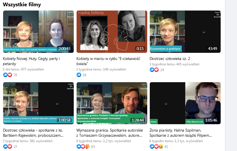 E-ciekawości świata, dzięki rozmowie odbywającej się on-line, umożliwiły poszerzenie zarówno grona odbiorców jak i grona gości – mogłam zaprosić do rozmowy takich bohaterów, którzy z racji odległości do Kcyni nie mogliby się zdecydować na przyjazd osobisty, choć dla mnie samej rozmowa przez internet stanowiła pewne wyzwanie… Trudno jest rozmawiać, tworzyć dobrą atmosferę spotkania, gdy rozdziela nas monitor i zależni jesteśmy od jakości połączenia internetowego. Ale ufam, że nie było najgorzej, a statystyki wyświetleń naszych e-Ciekawości zdają się to potwierdzać. Dzięki współpracy z wydawnictwem Czarne podczas niektórych spotkań mogłam obdarować Państwa książkami, co zawsze jest wdzięczną czynnością.